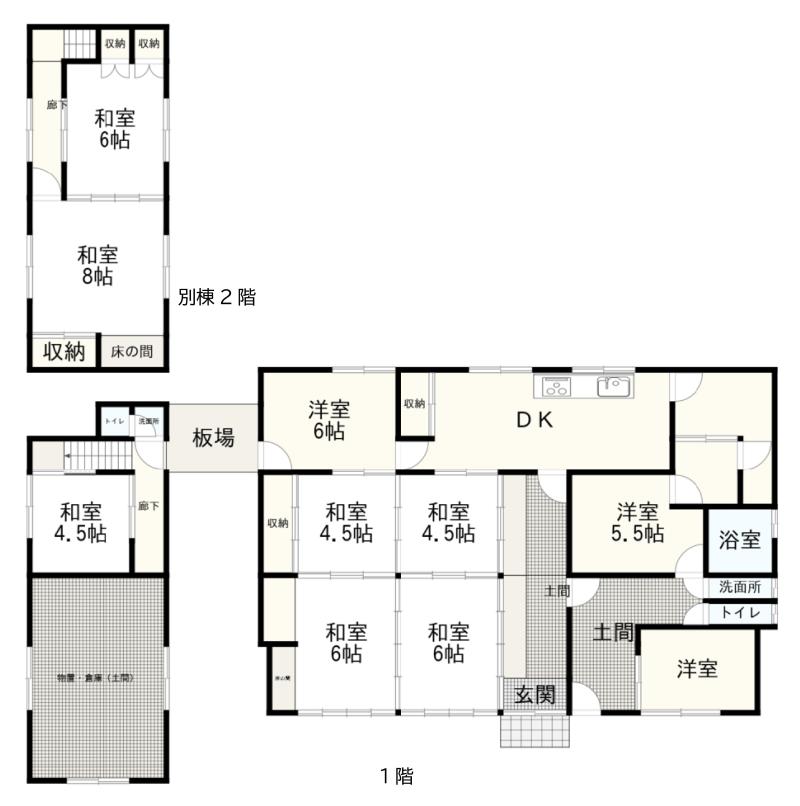 - 建物の築年数は不明ですが、母屋は100年越えと思われます。補修が必要な箇所があります。
